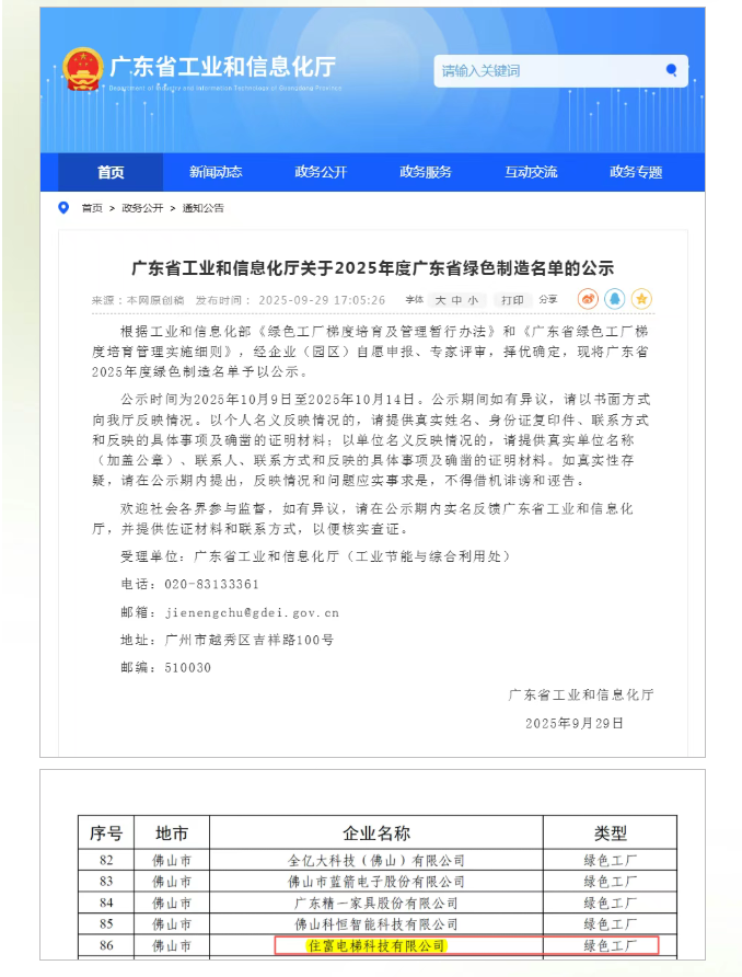 官宣!住富成功入选2025年广东省省级绿色制造公示名单(绿色工厂)!