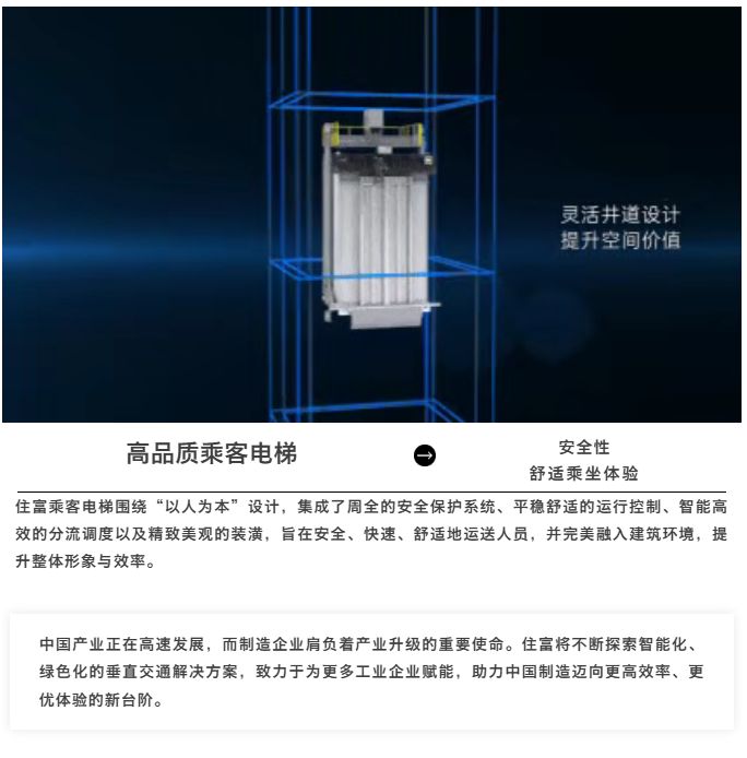 住富电梯针对百斯特电子的厂区结构、人货流通需求及电子制造业特殊环境,为项目提供10台载货电梯及乘客电梯解决方案。