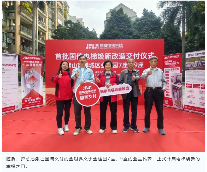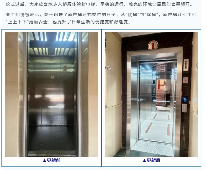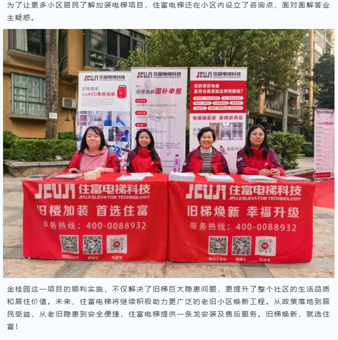住富电梯发挥专业的技术实力和高效的服务能力,目前已顺利完成了金桂园7座、9座旧梯焕新的工作。